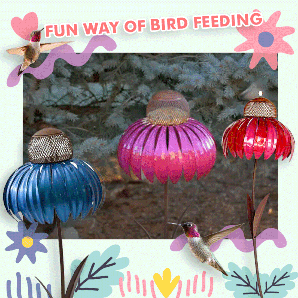 Der Sonnenhut-Kolibri-Futterspender bringt das ganze Jahr über ein tropisches Wunder in Ihr Gartennetz und bietet Vögeln rund um die Uhr Nahrung!