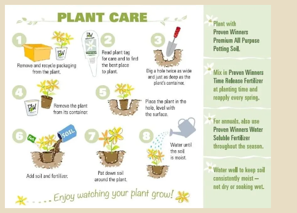 Pflege: Sobald die Sämlinge aufgehen, gießen Sie weiterhin regelmäßig und sorgen Sie während der gesamten Wachstumsperiode für ausreichend Feuchtigkeit. Geben Sie im frühen Frühling einen ausgewogenen Dünger und beschneiden Sie die Pflanzen nach Bedarf, um gesundes Wachstum und üppige Blüten zu fördern.